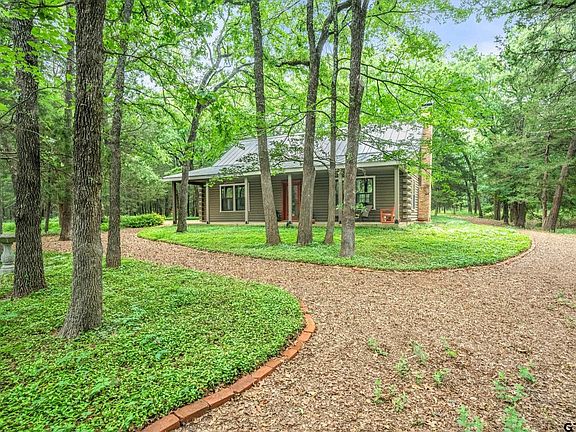 Meticulously Maintained Log Cabin Dream on 10± Wooded Acres with a Pond! Tucked away on a quiet, high-quality private road, this log cabin is your invitation to escape the chaos and embrace the calm. Nestled on 10± scenic acres with dual road frontage on either end, this rustic beauty offers the perfect blend of privacy, natural beauty, wise investment potential, and timeless East Texas charm. Whether you're looking for a peaceful weekend retreat, a self sufficient homestead, or your forever country escape, this one checks all the boxes. Inside, you’ll be welcomed by rich wood accents and an open-concept layout that radiates warmth and comfort. The living area invites slow mornings with coffee in hand and cozy evenings by a crackling fire. The kitchen features custom cherry cabinetry and flows effortlessly into the living space, creating the perfect place to gather, cook, and make memories — all with tranquil views of your land just beyond the windows. Enjoy numerous upgrades, including a 6' garden window, slate floors, well-insulated attic, and a 5-year-old heat pump and air handler. Interior walls and ceilings are made from 5½ by ¾ southern yellow pine. The home is protected by a 50-year standing seam metal roof and 6x8 D-shaped log exterior. Spectrum fiber is available, is currently utilizing internet tower with TV antenna. Step outside into your own private paradise: a peaceful mix of open pasture, shade trees, trails through the woods, and pond for golden hour reflections. Approximately 4 ac of woods surround the home & 7 ac of grasses, wildflowers, and select trees to the rear. County road frontage on the back acreage provides opportunities for additional building sites. Wooded area has been selectively culled to maintain a healthy undergrowth of native grasses and shrubs. There’s plenty of room to ride, roam, hunt, or simply soak in the fresh country air. With no through traffic and unmatched seclusion, this property isn’t just land — it’s a lifestyle.