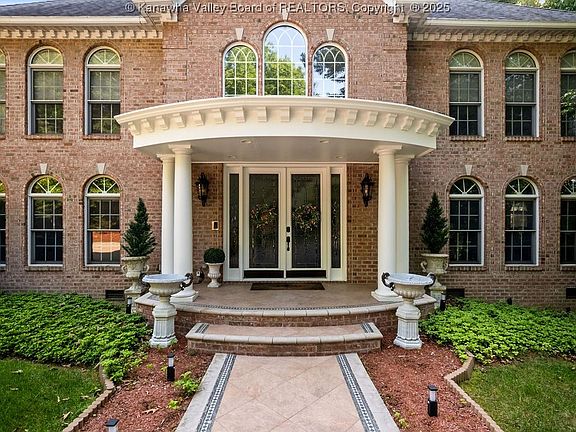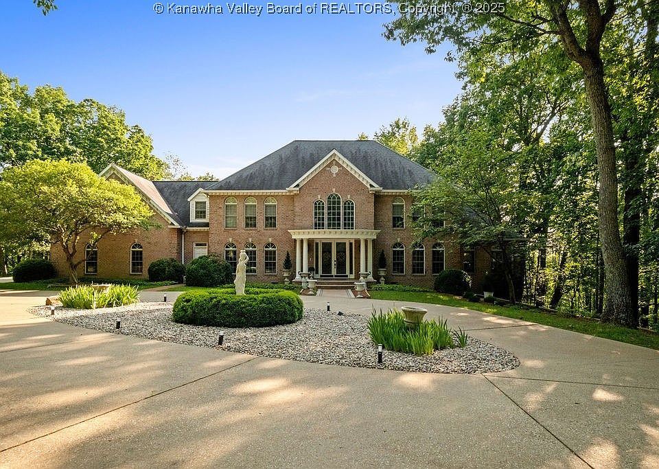 Perched atop 4 private acres in prestigious Quarry Creek, this expansive property is the highest elevation on the mountain, and offers breathtaking city and Capitol views during the fall and winter seasons. A flat, private driveway leads to refined interiors, with custom crown molding, marble floors and fireplace, granite and Corian countertops, cathedral ceilings, Palladian windows, hardwood floors, and law-enforcement-linked security system. Perfect for entertaining, it boasts a large kitchen, sunroom, media/recreation room with wet bar, and half bath on finished 3rd floor. It includes 5 bedrooms, 5.5 baths (1 on main floor, 4 on second floor, half on third floor recreation room), 3-car garage, abundant storage. Updates include second floor bathroom faucets, outdoor lamp fixtures, and a 30W liquid-cooled generator. Several rooms and outdoor lighting are smart-home ready. This Charleston landmark was featured in the Homes for the Holidays tour & WV Home Builders Association magazine.