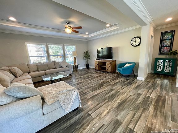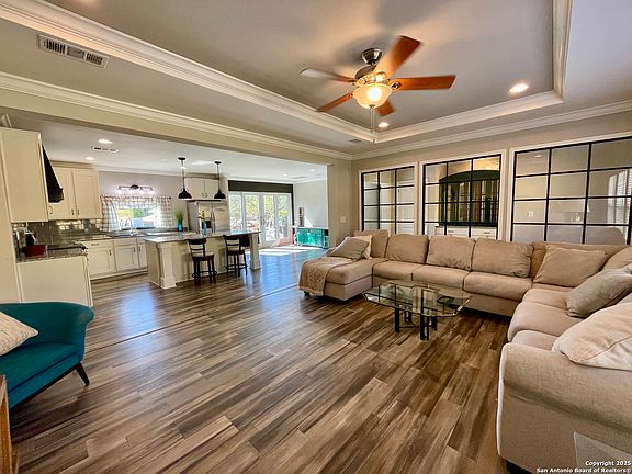 INCREDIBLE OPPORTUNITY FOR UNMATCHED VALUE!! 2021, lightly lived in, 1,980 sq ft manufactured home on a DOUBLE lot, .344 acre. This charming home is the perfect opportunity to own your own slice of Hill Country Heaven. Located on a cul-de-sac, quiet road with oak trees, you will find this 3 bedroom, 2 full bath home loaded with upgrades:$9,000 above ground pool (does need a new liner); $5,400 in full house gutters; $3,500 in dual 1,300 gallon water storage tanks; $1,600 water filtration system; $30,000 in CUSTOM fitted sliding doors & picture window over kitchen sink; full body, multi-function massage shower; garden tub; crown moulding & granite counter tops. Don't let this one slip by!