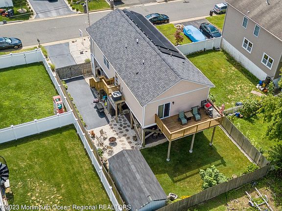Welcome to coastal bliss! Discover this impeccably renovated raised ranch, showcasing mesmerizing waterviews in sought-after Union Beach. Boasting three bedrooms and two baths, this home offers a modern, open floorplan that seamlessly connects the spaces. The upgraded kitchen features sleek granite counters, custom oak cabinetry, and stainless steel appliances, adding a touch of elegance. You'll love the bright and airy living room with its gleaming hardwood floors, creating a warm and inviting ambiance. The master bedroom suite is a tranquil haven, complete with a full bath and a convenient walk-in closet. Step outside onto the 200-square-foot deck, an oasis where you can savor the direct vistas of Raritan Bay—an ideal spot for relaxation and appreciation of nature's beauty. Functionality meets style with a full laundry/mud room accessible through a side entrance, and ample storage space thoughtfully incorporated into the attic. The outdoor space is an entertainer's dream, boasting a charming rocking chair front porch that beautifully complements the serene back deck overlooking the well-maintained backyard. Prepare to be enchanted by the lower level, a covered open-air oasis that exudes relaxation and enjoyment. Unwind in the sauna or whirlpool, and explore the various areas adorned with cushy chairs and lounges, crafting the ultimate relaxation vibe. Fully wired for sound and streaming, this area effortlessly transforms into an enchanting outdoor living room, creating magical evening and nighttime settings. Adventure enthusiasts will relish the ample room available for storing bikes, kayaks, or paddleboards. The fenced-in backyard is a private sanctuary, beckoning you to bask in the sun, stargaze, or indulge your green thumb. Plus, a spacious oversized outdoor workshop opens doors to endless creativity and projects. For convenience and security, the paved area in the backyard ensures private parking for your cars or boat. Union Beach is strategically located at the gateway to the iconic Jersey Shore, providing easy commuting options to NYC, and just a short, scenic drive or bike ride along the Henry Hudson trail leading to ocean beaches. Seize this unique opportunity in a rapidly growing market, making this coastal haven your very own. Don't delay, schedule a showing now to experience the magic of this remarkable home!