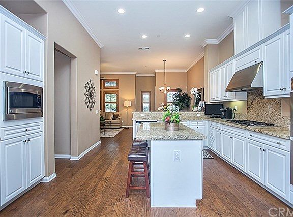 Exquisitely upgraded rare SINGLE STORY home in the heart of Woodbury with no one above or below you. From the beautiful cozy porch enter into this amazing one story floor plan boasting super high 11' ceiling, with a SEPERATE grand next generation SUITE/CASITA. As you enter, you are greeted with an impressive, enormous bright great room, boasting fireplace and upgraded wood floors. Come explore your inner chef in the gourmet kitchen equipped with extensive granite counter space, stainless steel appliances, double oven, built in Microwave, grand center island, and pantry. The gorgeous private courtyard with fireplace is an entertainer's dream. There are extensive upgrades throughout, including recessed lighting, crown molding, plantation wood shutters, custom paint, ceiling fan, and indoor laundry room. Grand master bedroom offers walk-in closet and soaking tub. Enjoy oversized two car garages furnished with epoxy floors.Enjoy the Woodbury community's 9.5 acres Recreation center/multi purpose room at the Commons. Be entertained with Woodbury 7 resort style pools and spas, Fireplaces and barbecue areas, neighborhood gardens, sand volleyball, basketball courts, tennis court, sport courts and much more. Walk to Jeffrey open space trails and Woodbury Elementary School.