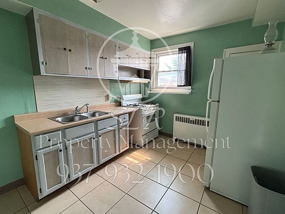 Living/Bedroom Areas: Carpeted floors Multiple windows for natural light Neutral wall colors with some red/maroon accents Radiator heating Spacious layout for a 1-bedroom setup Kitchen: Tiled floors Ample counter space with cabinets above and below Green wall color Bathroom: Standard bathtub/shower combo Toilet Sink with mirror above Yellow/beige tiles on walls