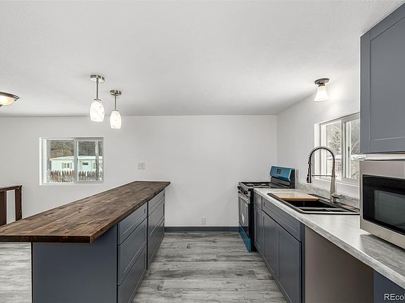 Welcome to your mountain retreat in the charming town of Empire! This refreshed 2-bedroom home offers an inviting open layout filled with natural light, updated flooring throughout, and a cozy pellet stove—perfect for enjoying Colorado’s four seasons. The spacious kitchen features modern cabinetry, wood countertops, stainless steel appliances, and abundant workspace, making it ideal for cooking or entertaining.