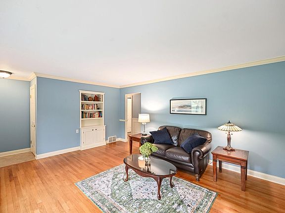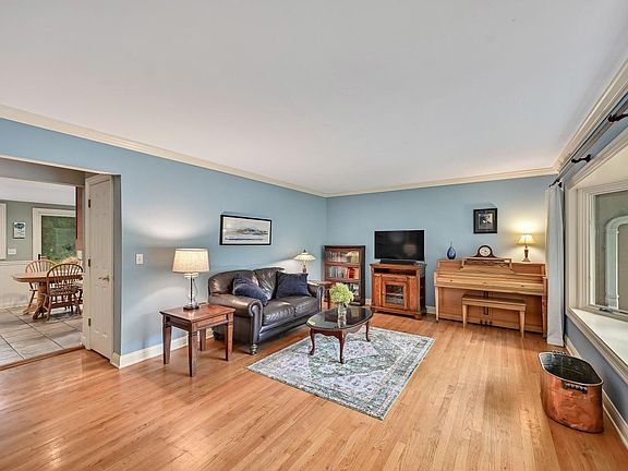 Life in the country moves at a different pace. The oak trees stand tall & their rustling leaves harmoniously blend w/birdsong & laughter from the neighborly conversations. Wide meandering asphalt driveway top coated in 2022. Tiled front entryway opens to expansive sunbathed LR complete w/painted millwork, bow window & BI bookcase. Updated eat-in KIT w/practical counterspace, stainless range, newer dishwasher + crown topped cabinets. 4 spacious BDRMs. LL flex zone w/can lighting, room for a ping pong table, your workout center plus the perfect rec room that is cozy & complete for football viewing! Even the lower level bath has heated floors! Big backyard deck & sunken firepit will be ready for your outdoor parties next season! New roof, siding & AC in 2023. Don't delay your change of pace!