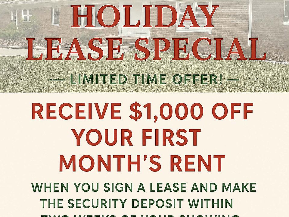 Happy Holidays! Holiday Lease Special Limited Time Offer!