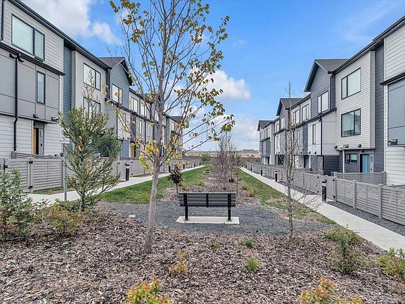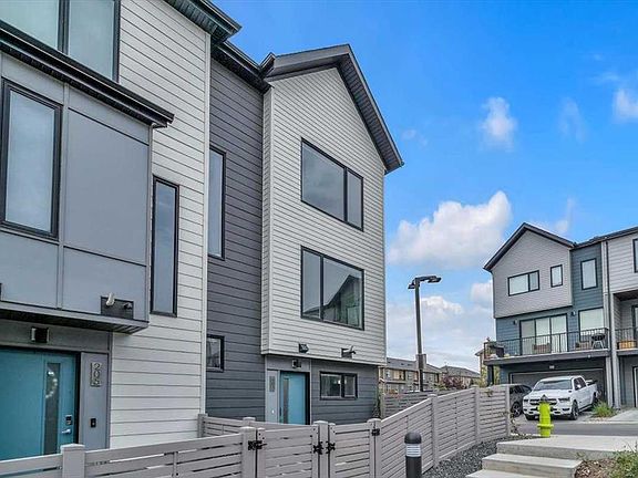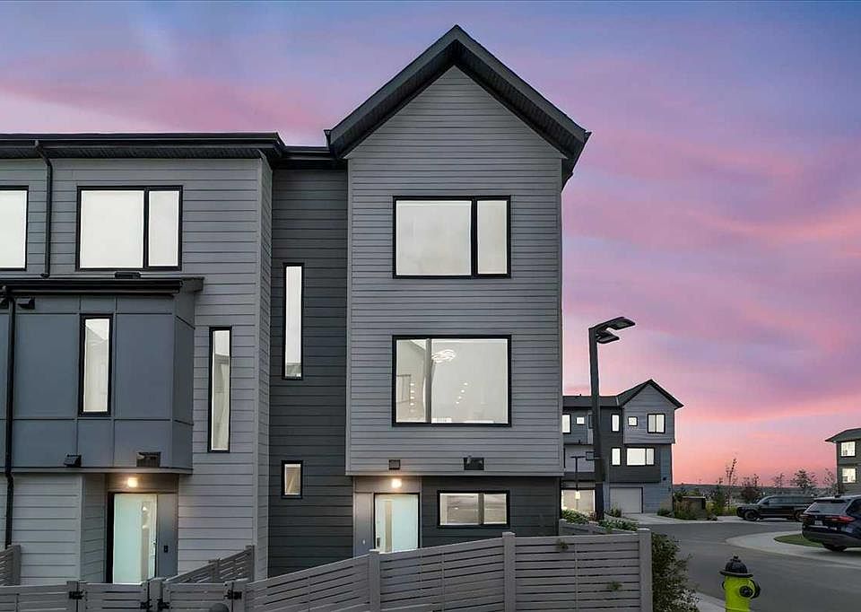 Welcome to this beautiful corner-unit townhouse in the vibrant community of Evanston, where thoughtful design meets modern convenience. With three bedrooms, 2.5 bathrooms, and a three-storey layout, this stylish home offers the perfect combination of space, function, and comfort — all in a location that puts every amenity within easy reach. Step inside to a welcoming main-floor foyer that sets the tone with its clean, modern feel and durable vinyl & tile flooring throughout. This level includes a private den with a proper door, making it perfect for working from home or hosting meetings in peace. You’ll also find a closet for coats and storage, a utility area, and direct access to the double attached garage, providing ultimate convenience for daily living. Upstairs, you’re greeted by a bright, open living space designed for both relaxing and entertaining. The kitchen shines with white cabinetry, quartz countertops, and stainless steel appliances, including a gas range for the home chef. There’s also extra power under the sink, ideal for adding a garburator or water filtration system. Elegant light fixtures, designer wall treatments, and vinyl flooring continue throughout this level, giving the space a modern, cohesive look. The dining area comfortably fits a large table, and the living room is bathed in natural light from the corner windows. Step through the sliding glass doors to your balcony with a gas line for your BBQ, making it easy to grill and entertain outdoors. A 2-piece bath completes this floor. On the upper level, the primary bedroom is positioned for privacy, featuring a 3-piece ensuite and a large closet. Two additional bedrooms share a 4-piece main bath, creating a practical setup for family or guests. The upper laundry area includes extra storage space, making household chores simple and efficient. This home was built with energy efficiency in mind, featuring a tankless hot water system and an A/C rough-in, giving you comfort and flexibility for every season, and motion detection lights in the washroom and laundry room. As a corner unit, it enjoys extra natural light and a sense of separation from neighbours. The fenced front yard is perfect for a seating area or a small garden, while the landscaped central courtyard adds extra green space and privacy. Located close to schools, parks, shopping, and dining, this home is also just minutes from Stoney Trail for quick access around the city. You’ll love being near the Carrington complex, which includes a playground and grocery stores within walking distance, providing everyday convenience just down the street, plus other playgrounds within walking distance. Beautifully maintained and move-in ready, this corner townhouse offers all the modern comforts, smart upgrades, and community connection you’ve been searching for.