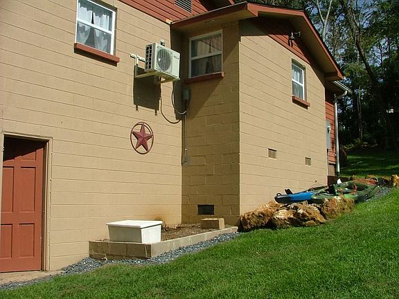 Want to have almost 400 ft on the creek and a view to take you to another world?......Kayaking is easy here to enter the water.......This is it!!!!!!!!!!!!!!!! The owners have really done a number on this location. The Creek House has been redone totally. The open floor plan has the view that whether it rains or it is gloomy or the sun shines bright..........it is really hard to turn away from the windows that bring in the beauty from the outside. No matter which window you look out you will have the beauty of the CREEK or the CALADIUMS that will be blooming soon.( MANY MANY VARIETIES) You will want your table set just right so that the view is yours from wherever you sit. There is a double fireplace that is located in the family room and the master bedroom. The kitchen is L Shaped off of the Family Room..... Lots of cabinets and countertops. Fridge Stove and Dishwasher stay. The laundry is large enough for a side by side washer and dryer..................The owner put a stack in so they would have a little more space. The downstairs you enter from the outside has a full bath(shower) so that if you are working outside or swimming in the CREEK or working in the yard you will have a place to clean up before going inside. There are several out buildings with electric. There is a RV Hookup.......2 septic tanks on property and 2 wells. There is a home at the front of the property that overlooks the Creek that needs totally redone. Owners are Transferring out and can not finish the larger home. Call your Realtor Today to see this BEAUTY.