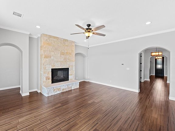 - Breakfast Bar, Chandelier, Crown Molding, Entrance Foyer, French Doors, Granite Counters, High Ceilings, Interior Steps, Multi-level Floor Plan, Multiple Dining Areas, Multiple Living Areas, Primary Bedroom on Main, Recessed Lighting, Wired for Sound