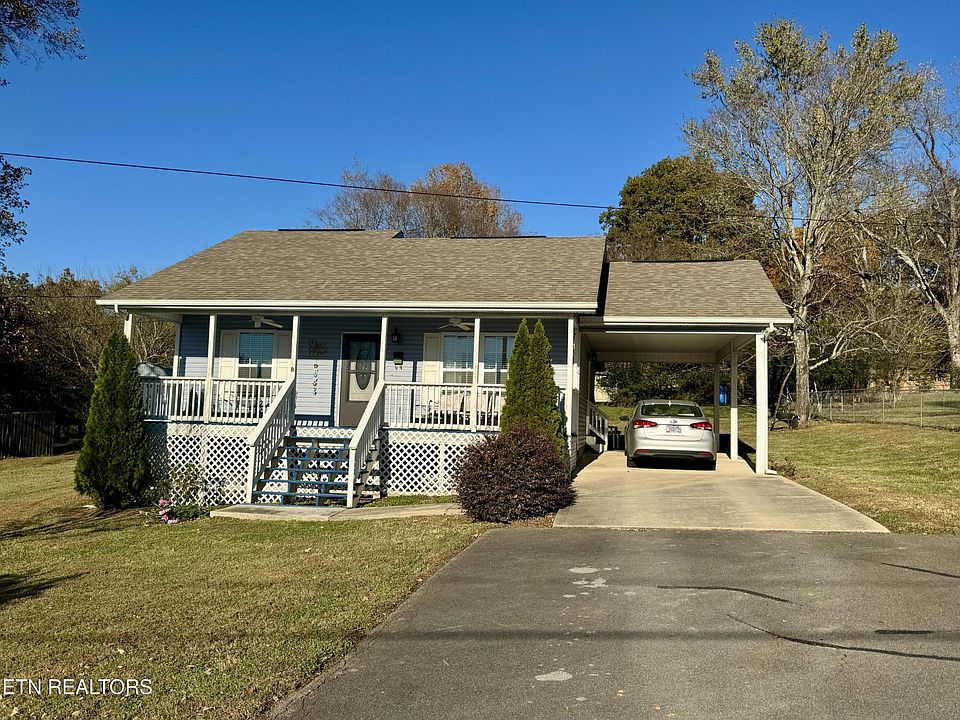 RANCH STYLE HOME IN EXCELLENT CONDITION. Built in 2016. Open floor plan, appliances convey including washer and dryer. Side entry door to attached carport, back entry door to a screened porch. Large covered front porch. Storage building conveys. Plenty of off street parking. Low maintenance home. Very well cared for home and only 9 years old. Convenient location to Loudon, Lenoir City and I-75.