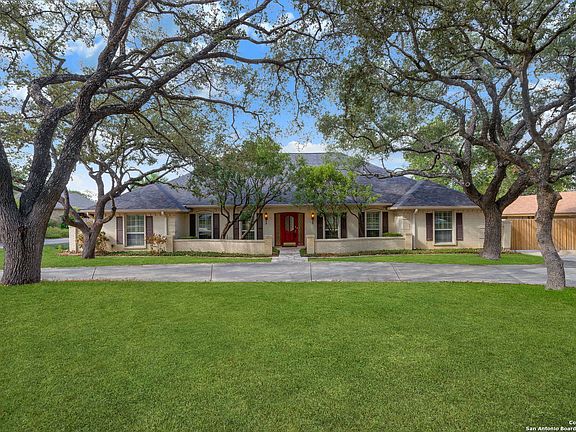Castle Hills single-story beauty! This well-built home offers the character often desired, but hard to find. A sparkling pool w/pool bath and gazebo is beautifully visible from the large, beamed family room. Real wood floors throughout the common areas. The primary suite offers his & her bathrooms & closets. Custom office shares a warm, double-sided fireplace with the family room and there is a precious, sunny breakfast room with a built-in buffet overlooking the pool! This unique home is a must see!