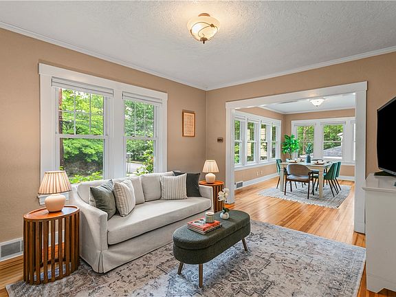 Charming Craftsman in desirable Regent Square! The main floor features a sunny, ranch-style layout with refinished original hardwoods, windows galore, two bedrooms, and a full bath. Modern updates include newer appliances and tile flooring, high efficiency heat pump and Smart Thermostat, lighting and electrical systems. The lower level has been thoughtfully renovated to add a spacious owner’s suite with an en suite bath featuring a dual showerhead. Flex space and a sliding glass door open to the serene backyard with a stone patio and a color-changing pondless water feature—both visible and audible from inside. Enjoy tree views from every bedroom. A cozy mudroom off the garage adds convenience, plus there's an EV charger in place. The handcrafted free little library—complete with dog treats—adds a welcoming touch. All just blocks from Frick Park, Braddock Ave shops, and easy access to parkway!