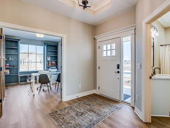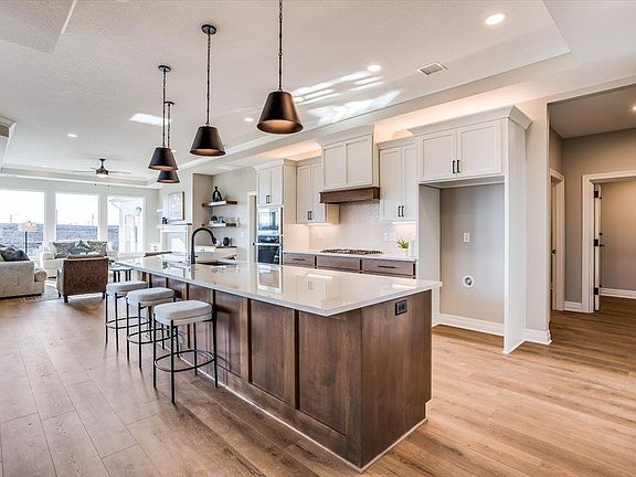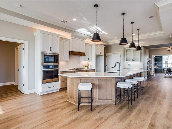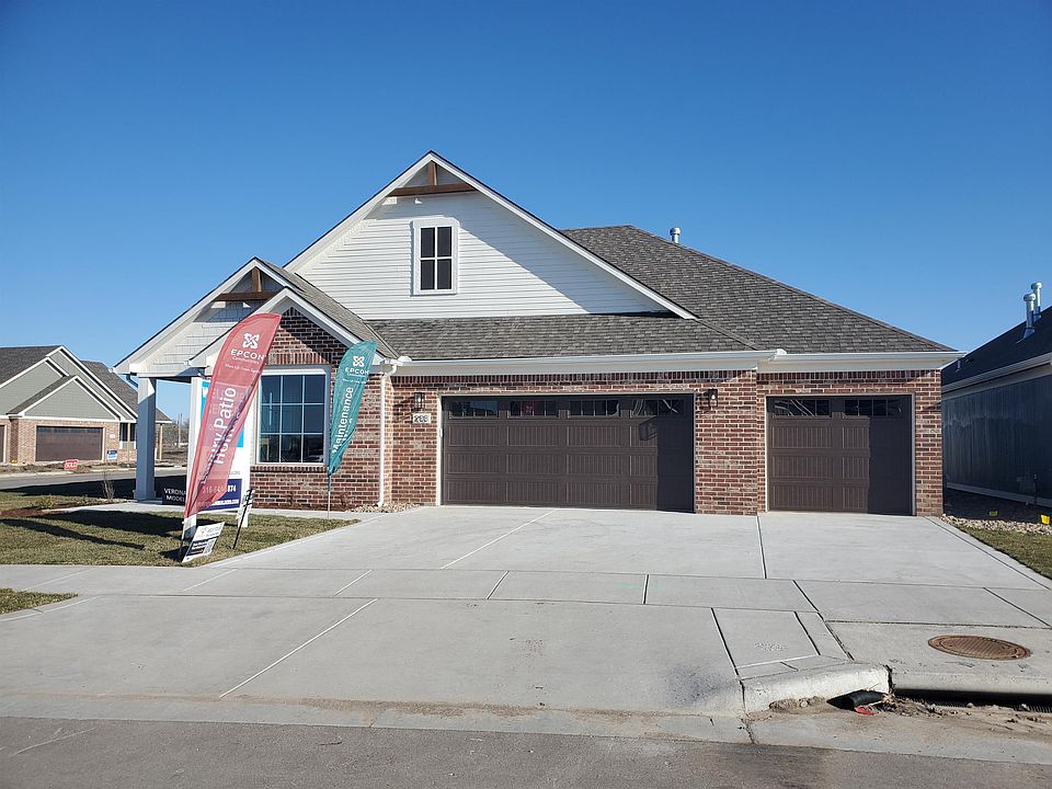 Take a peek into a light filled floorplan that is built for relaxing and enjoying both indoors and outdoors! This Verona plan boasts a massive kitchen island, that looks onto a well sized dining area, with views onto the covered patio complete with gas fireplace for cozy evenings on the patio. Owners suite features its own fireplace, and additional sitting room for office or workout area in your own bedroom. Additional features of this home include a zero entry custom tiled shower in the owners bath, safe room that doubles as a second pantry, and oversized 4 car garage that is great for storage, workshop space, or extra vehicles! Double closets in owners bedroom, along with extra storage and linen closets throughout. 10' ceilings allow for an airy open feel. Appliances include Blanco kitchen sink, GE stainless steel appliances including dishwasher, microwave, cooktop, and wall oven. Finishing custom touches like extra folding area and cabinets along with sink in the laundry room, and coffee bar area with glass front cabinetry make for a luxe and efficient style in all areas of this home. Maintenance provided community with neighbborhood amenities including heated saltwater pool, pickleball courts, fitness room, and more! GENERAL TAXES NOT SPREAD, SPECIAL ASSESSMENTS, HOA FEES, ROOM SIZES AND LOT SIZES ARE ESTIMATED. ALL SCHOOL INFORMATION IS DEEMED TO BE ACCURATE BUT NOT GUARANTEED.
