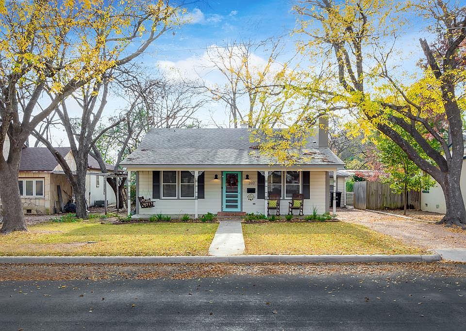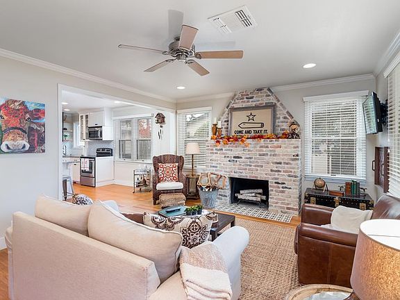 This beautifully renovated 3-bedroom, 2-bath home offers vintage charm with modern upgrades in one of Fredericksburg's most desirable downtown neighborhoods. Located just a block from the historic Marketplatz and two blocks off Main Street, this property combines walkable access to downtown amenities with the peace and charm of a quiet, tree-lined street. The home features an open and functional floor plan, original hardwood floors, elegant crown molding, and all-new cabinetry. Recent updates include LED lighting, plumbing, electrical, a new hot water heater, and modern appliances—making for easy maintenance and long-term peace of mind. Enjoy your morning coffee on the inviting front porch or unwind in the fun and eclectic backyard. As one of the highest-rated short-term rentals in Fredericksburg, this property has generated substantial rental income over the past three years. A transferrable STR permit adds significant value for those looking for a turnkey investment or a weekend getaway with established income potential. this upscale home offers the perfect balance of location, comfort, and income opportunity—ideal for anyone looking to enjoy or invest in the heart of Texas wine country.