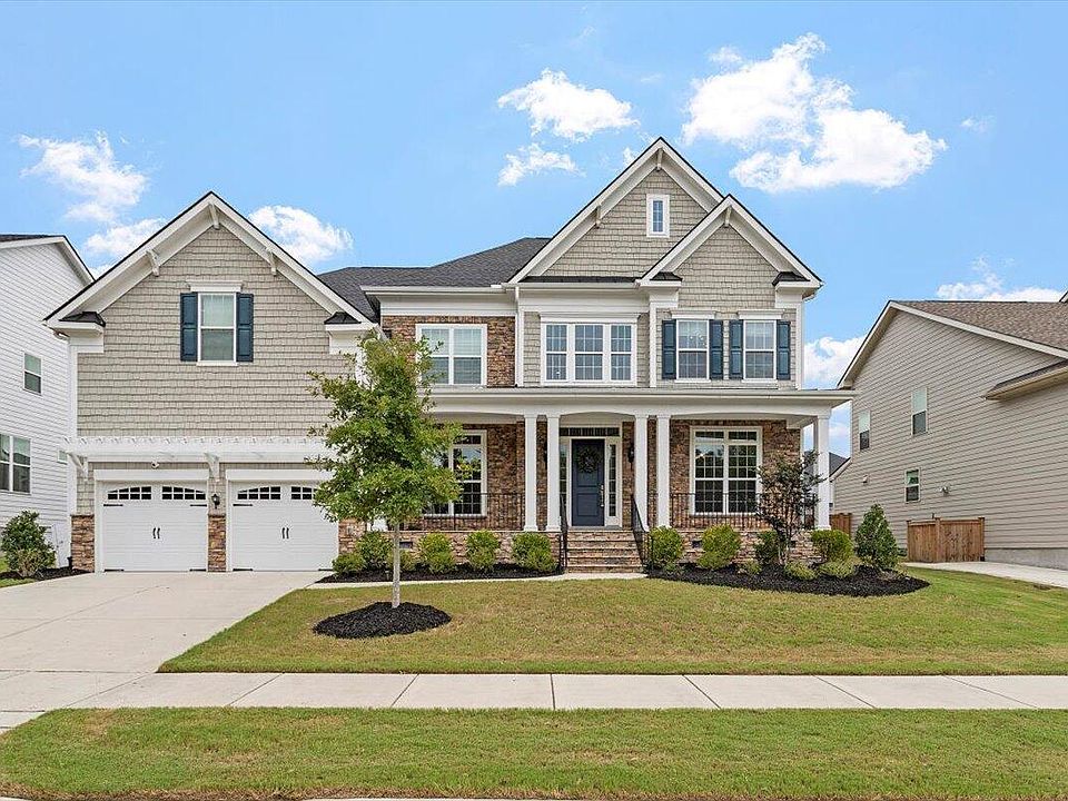 Welcome to your dream home—a refined blend of luxury, functionality, and modern design built by Toll Brothers. This stunning 5 bedrooms, 4 full bath boasts 4239 sq ft of beautifully finished living space with unblocked woods view ahead. Step into the dramatic 2-story foyer with the elegant chandelier and impressive curved staircase. The family room is a great setting for relaxation with its cozy fireplace and ample natural light. The formal dining room is perfect for dining table for 8 people. Great room provides the ideal space for entertaining. Guest suite on the main floor adds convenience for visitors or multigenerational living. The open-concept gourmet kitchen is a chef's dream, featuring soft-close high-end cabinetry, ample workspace and storage, beautiful light countertop and hugh walk-in pantry. A second staircase leads privately from the kitchen to the upper level, enhancing flow and functionality. The luxurious primary suite is a true retreat, complete with tray ceiling, an adjoining sitting room, designed closet and amazing master bathroom. A playroom addition on the second floor offers a large and versatile space. This fantastic crafted home combines top rated schools, generous living space, and top-tier upgrades in a highly desirable location in apex. Swimming pool, clubhouse, Green open spaces and plenty of parking lots. Just One step away to American tobacco trail. this property offers a rare opportunity to live exceptionally. Schedule your private tour today and own this astonishing dream house for you and your beloved ones!