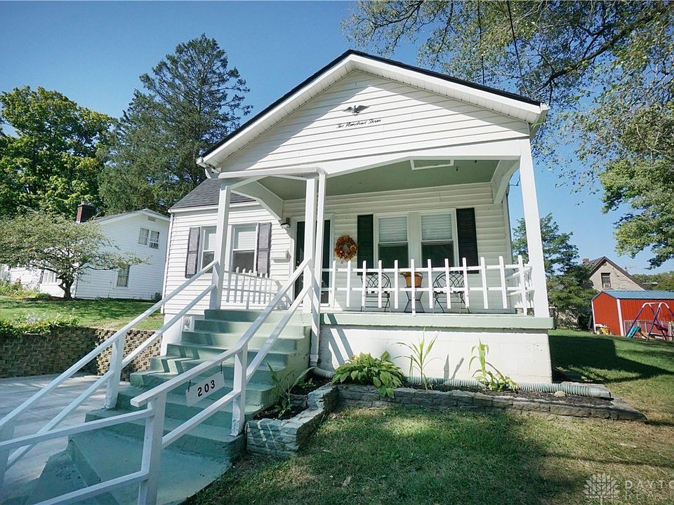 Adorable Cape Cod walking distance to School, The Morrow Arts Center, Bike Trail, and Restaurants! 2 bedrooms, 1 full bath, loft, Living Room, and Eat-In Kitchen with Butcher Block Counters, Covered Front Porch, and Large Rear Deck, Full Basement with Walkout, 2023 Kitchen Addition and Appliances, Roof, Concrete Driveway, Interior Paint and Carpet, Bathroom Remodel, 2019 Water Heater, 2014 HVAC. Great floor plan and tons of storage!