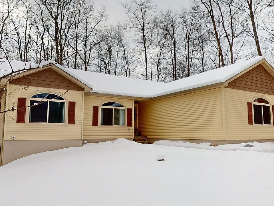 Discover your dream retreat at this stunning 1836 sq. ft. home, complete with a full finished walkout basement! Nestled on a serene, wooded lot less than a mile from the crystal-clear waters of Higgins Lake, this property offers the perfect blend of tranquility and convenience. The open floor plan boasts vaulted ceilings in the living room, complemented by rich wood floors, while the kitchen features elegant tile floors and quartz countertops. Whether you’re enjoying the peaceful surroundings or entertaining guests, this home is designed for both comfort and style.