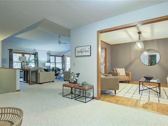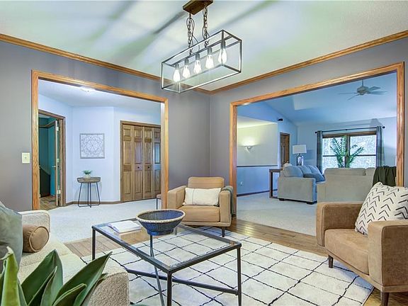 This is the one you've been waiting for! Nearly 3 acres of privacy within city limits, this stunning 4-bed, 3-bath home offers the perfect blend of comfort and convenience. Enjoy a spacious open layout with a cozy living room fireplace, home office, and three-season room overlooking a fenced backyard with patio and outdoor fireplace. The primary suite features a large walk-in closet and private bath with generous storage throughout. The walkout lower level includes a large family room, bonus/playroom with theater setup, workout room, and three bedrooms. Oversized 4-stall garage with direct lower-level access provides space for vehicles, tools, and toys. Other improvements include a brand new roof in 2025 with a transferable warranty, dishwasher in 2024, fresh interior paint throughout the home, & garage is wired for an EV charger. Move-in ready, meticulously maintained, and minutes from schools, parks, and shopping. This one won't last! Schedule your private showing today!