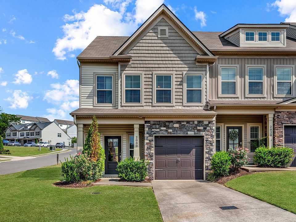 END UNIT! Ready to move into! Stainless steel kitchen appliances with refrigerator staying. Washer and Dryer staying with home. Beautiful new white kitchen cabinets, new light fixtures, covered front porch, short walk to community pool and dog park. Fantastic location convenient to everything in quiet and established community
