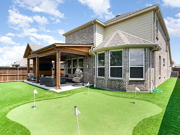 Step into your backyard retreat, designed for both relaxation and entertainment. The owners have created a true dream backyard—pet and children friendly turf for a lush look year-round, a putting green for fun afternoons, an extended covered patio for gatherings, and zero-maintenance landscaping that keeps it all pristine without the work. The front yard has been equally elevated with custom planters and professional landscaping, ensuring your home stands out from the rest.