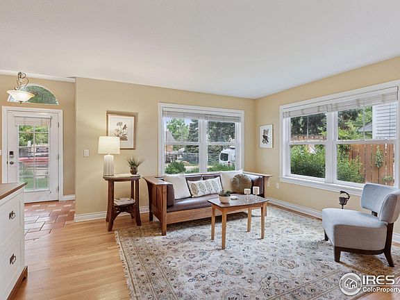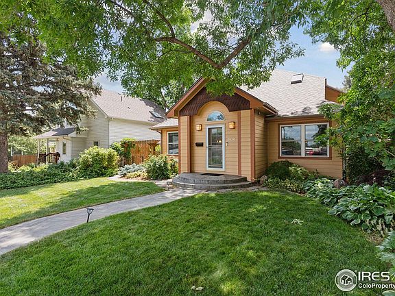 Charming lower Chautauqua 2-story craftsman-style bungalow with beautiful landscaping and a nice fenced backyard. Just down the road from Chautauqua Park and close to the University of Colorado campus. Thoughtful and creative architecture seamlessly blends the original 1950 bungalow with the delightful 2-story addition completed in 2000. 3 main floor bedrooms. Spacious rear patio is covered, and the upper deck above is also covered with private access off the primary suite. The comfortable media room in the basement offers entertainment/library built-ins and a wonderful queen-size Murphy bed for a 5th bedroom with a private 3/4 bath for your out-of-town guests. Pathways of beautiful Cathedral gray slate lead to the front entry and meander throughout the outdoor areas. The detached single-car garage and additional parking pad are accessed from the lush rear alleyway. No projects to undertake here - this home is perfect as is and ready to move into now!!