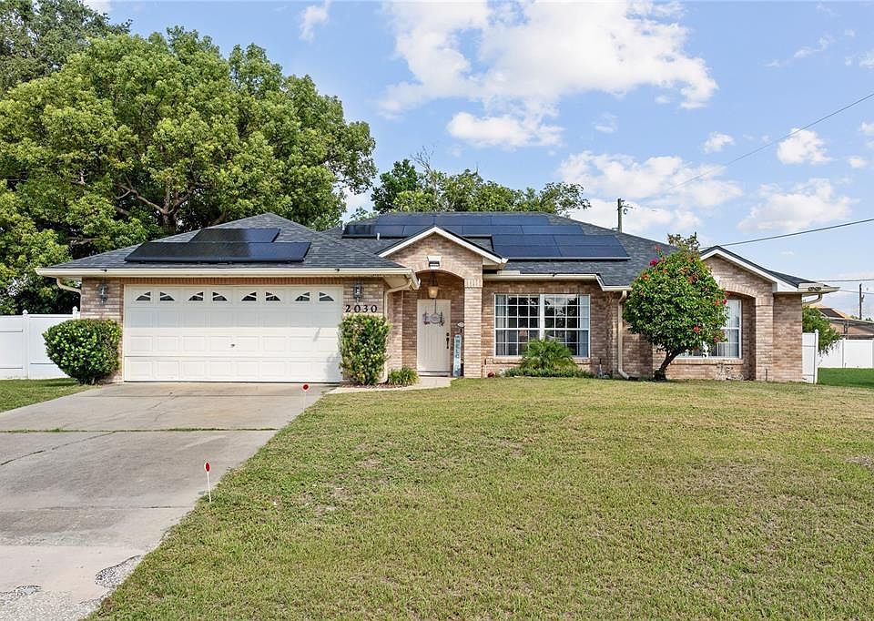 Welcome to 2030 Deborah Terrace! This beautifully maintained home is filled with updates and thoughtful touches throughout. NEWLY ADDED SOLAR & ROOF - LOAN TO BE PAID BY SELLER AT CLOSING. Step inside to find gorgeous wood floors, a bright open floor plan, and two separate living areas—perfect for entertaining or creating your own private retreat. The split floor plan ensures privacy, while the massive master suite boasts a spa-like bathroom with a relaxing jacuzzi tub. Enjoy the Florida lifestyle with a huge rear screened lanai, a spacious patio, and a fenced oak hammock backyard that feels like your own private park. The updated kitchen includes a premium alkaline water filtration system, complemented by a whole-home water softener and treatment system, making it easy to enjoy clean, filtered water every day. Recent improvements provide peace of mind, including a brand new roof in 2024, fresh interior and exterior paint, a newer water heater, and a whole-home solar system installed in 2024 that will be paid in full by the seller at closing. With no HOA and no CDD, this move-in ready gem offers the perfect blend of comfort, efficiency, and space.
