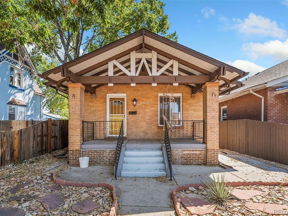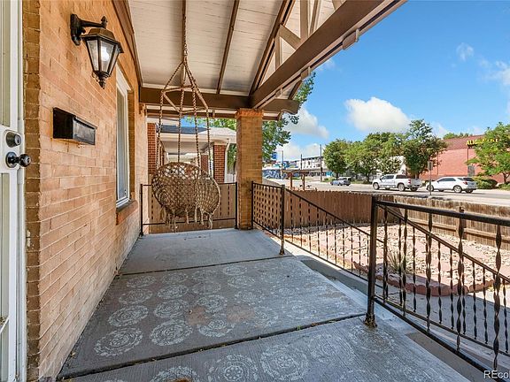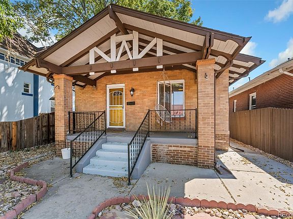 This perfect early 1900s brick bungalow blends timeless vintage charm with thoughtful modern updates in the highly desirable Jefferson Park neighborhood. Enjoy the convenience of nearby bike trails, excellent walkability, and quick access to downtown, entertainment venues, Jefferson Park itself, a variety of restaurants, Mile High Stadium, the light rail, and more. Zoned U-TU-B, the property allows for the option of building a detached accessory dwelling unit if desired. A charming front fence and inviting covered porch set the tone for the home’s warm character. Inside, a spacious entryway with new tile and ample storage leads to an open living and dining room, separated by a classic arched doorway. Abundant natural light fills the home, and the large dining room is ideal for hosting dinner parties. The updated kitchen offers modern conveniences, and a back entryway/mudroom—complete with new tile—provides a perfect landing spot for coats and shoes. A separate office adds functionality, while two bedrooms share a connecting full bath. Step outside to a private backyard with a garden, patio for summertime dining, and a detached brick garage featuring a charming green door that matches the backdoor of the home. Additional off-street parking is accessible from the alley. A partially finished basement offers flexible space for storage or potential living area. Recent updates include new kitchen countertops and sink, new exterior bib and pipe, an added backflow eliminator (2025), and an installed ceiling fan. This move-in-ready gem offers historic character, modern comfort, and an unbeatable location. Buyer/Buyer's agent is responsible for verifying all information, measurements, schools.