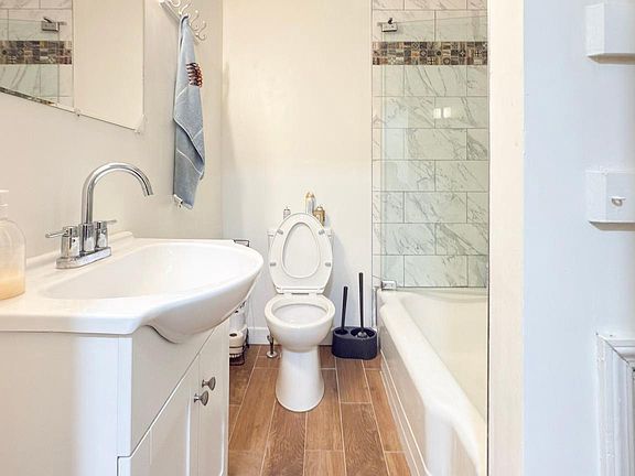 This charming 2-bedroom, 1-bathroom townhome is truly move-in ready, featuring brand-new flooring throughout. Upstairs, you’ll find two comfortably sized bedrooms and a stylishly updated bathroom with a skylight that fills the space with natural light. The kitchen is equipped with stainless steel appliances and leads to the rear concrete driveway—no more searching for parking! The full-sized basement offers great ceiling height, a laundry area, and plenty of potential with its own separate exit. Conveniently located just off I-95, this home puts you minutes from everything. Schedule your showing today!