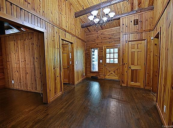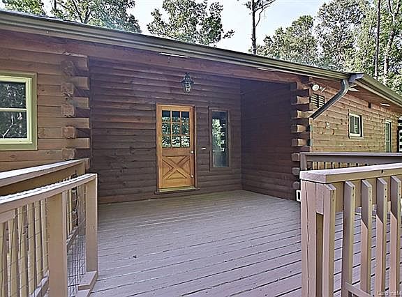 ACREAGE & PRIVACY GALORE with Rental Income potential. Beautiful log home w/modern interior on wooded 8 acres in The Plantation neighborhood of Rock Hill. Enjoy the wildlife & the feel of living in the woods, but be within a 5-minute drive of more than 20 restaurants, 3 grocery stores & more. A cozy log home w/knotty pine throughout the main floor of 2BR /2BA/kitchen & laundry room. Additional 2BR/2BA w/second kitchen & laundry room on the lower level, which may be used for a parent or an in-law. Could be easily split into two units for renting. No HOA to restrict you, but great neighbors w/well-maintained yards. You can put in a garden or a chicken coop. City close but outside of the city limits thus lower taxes! Newly renovated master bath, laundry room, basement and kitchen with granite countertops. New roof, HVAC, carpets and appliances. Open floor plan Great Room w/a breakfast bar & wood stove. Gas & electric hookups on both levels for laundry and range/ovens. A must see!