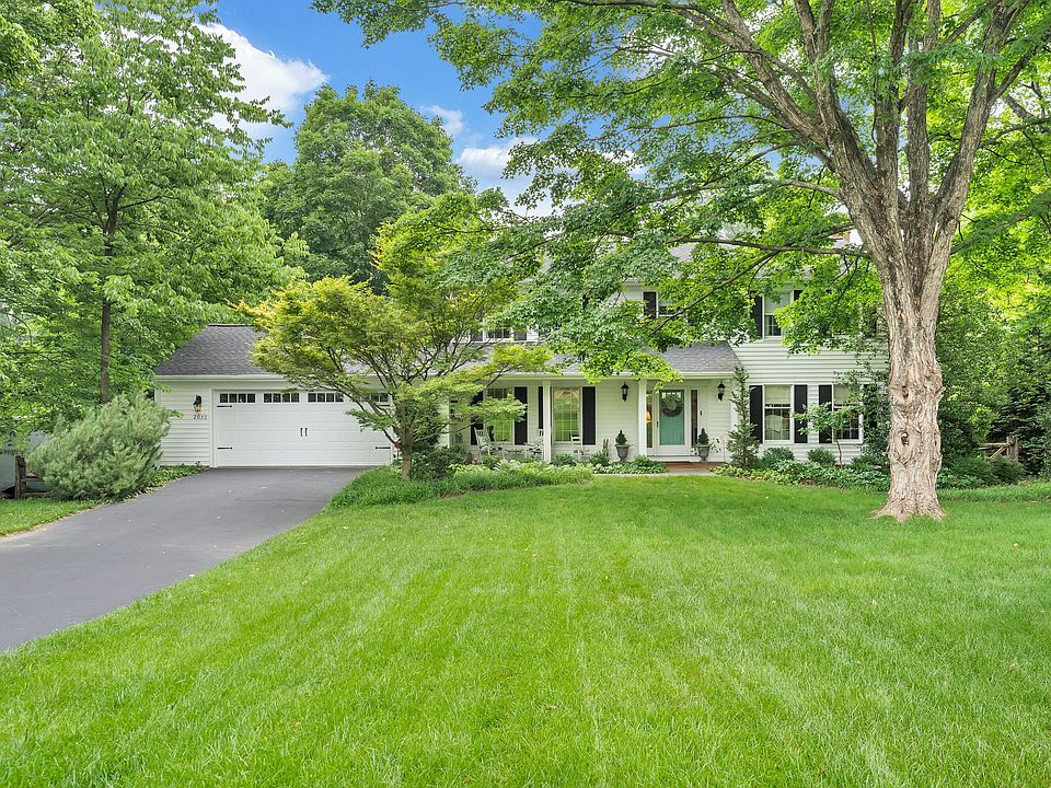 Welcome to a remarkable home where elegance meets comfort. This 4 bedroom property is situated on a quiet dead-end street offering many features. The open concept kitchen boasts custom cabinets, quartz countertops, stainless appliances, and a farmhouse sink. The adjacent living room, complete with a masonry fireplace, seamlessly blends style and coziness. Convenience is ensured with a 2-car garage on the entry level. Outside, a park-like yard with mature landscaping creates a peaceful setting. Enjoy the expansive Trex deck with a retractable awning for outdoor relaxation. The lower level features a family room with a second fireplace, perfect for unwinding. Upstairs, discover the primary suite with an en-suite bathroom and ample closet space, along with three additional bedrooms. Luxury and functionality unite in this exceptional home, offering an ideal lifestyle. Don't miss the chance to make it yours.