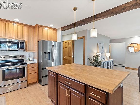 This is one of the most charming, well-maintained ranchers you’ll find in the heart of the old Wasson area! You’ll love the quiet, tree-lined streets, low-maintenance landscape, and easy access to nearby parks and amenities. The private backyard is truly a retreat—featuring mature trees, new turf lawn that always looks freshly mowed, a cozy fire pit for evening gatherings, and even a practice driving range for the golf enthusiast. A large screened-in porch and covered patio offer the perfect spot to relax or entertain outdoors. There’s also a great shed for extra storage, RV parking, and even a view of Pikes Peak! Step inside to low-maintenance hardwood floors throughout much of the main level and a spacious primary bedroom with double closets and plenty of space for a sitting area or home office. Natural light pours through beautiful wood framed windows, bringing warmth and Colorado sunshine to every room. Hot water baseboard heat is such a plus in the dry winter months! Snuggle up to the gas fireplace on those cool evenings at home. Downstairs, the expansive family room offers the ideal flexible space for a playroom or to gather, watch a game, and host friends. The basement was newly updated with designer bathroom upgrades and features two additional bedrooms, a 3/4 bath, a generous laundry/utility room, and great storage. Fabulous updates include a new roof and fresh exterior paint—both completed in 2021, basement refresh 2022, new upgraded electrical panel 2022, fresh carpet 2023 and updated backyard landscape 2025. Whether you're looking for space to spread out, entertain, or simply enjoy Colorado living indoors and out, this home offers comfort, charm, and versatility in one perfect package. Come see why it stands out from the rest!