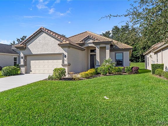 2030 N BUSH HILL LOOP in NASH CROSSING (a 55+ deeded community which is completely built out)! Here is your opportunity to own a discovery villa that has all the extras you can put into a new build without the additional costs. You can find this beautifully maintained home in the five-star gated community of The Villages of Citrus Hills. Built in 2020 the owners spared no expense throughout this well- appointed and meticulously maintained home. This home boasts two spacious bedrooms and a dedicated office that can be turned into a 3rd bedroom. Because this home is FULLY MAINTAINED outside, you will have time for relaxation, entertaining and anything you can dream of for that perfect day in Florida. This home is fully repainted every 7 years included in the maintenance fee! Every room offers professionally designed finishes.Extras include: 2163 square feet (over 200 extra feet) St James Model, Crown moulding throughout, Radiant Roof Barrier(extra insulation),Glass tub/shower enclosure in 2nd bathroom. It also has a linen closet. 20 " tile flooring on the diagonal throughout home, Owners Suite has additional square foot added, recesses lighting and custom fans as well as his and hers closets. The 2nd bedroom also has recessed lighting. The study has additional square footage added and can easily be set up with a closet to make a 3rd bedroom. The dining room also has additional square footage added. There are over $25,000 in window coverings(Plantation shuttewrs and Hunter Douglas accordian blinds on slider)as well as Designer light fixtures throughout. Three accent colors were used throughout for continuity. No expense was spared even on the entry and lanai with pavers on both.The two car garage has dawn to dusk lights and the lawn care,watering, mowing, yard trimming and blowing are done weekly. Tray ceilings are found in the entry, main room and Owners Suite. The kitchen and both bathrooms boast Quartz countertops with a large island in kitchen that has 2 pop up electrical outlets. Each drawer also has 100 % opening cabinets drawers with soft closing feature. Drawers for pots and pans under the cooktop. Two spacious bedrooms and a dedicated office that can be flexed into a 3rd bedroom. This home is great for relaxation, entertaining and pure enjoyment. .. LUXURY LIVING+LOVELY LOCATION=LIVING THE LIFE! Don't sign on that line for a new home before viewing this one!