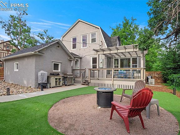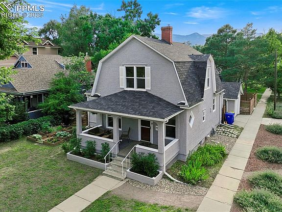 Set on a corner lot in the Old North End, this updated Dutch Colonial blends timeless architecture w/ modern upgrades in one of Colorado Springs' most iconic neighborhoods. Positioned just blocks from Downtown, the home offers 1 car detached garage, convenient side street parking, a private backyard, & walkable access to schools, parks/trails, restaurants, Lincoln Center, Colorado College, Patty Jewett & Penrose Hospital. Covered porch entry opens to main level w/ 9’ceilings & engineered wood floors that flows throughout the main level. The open & bright great room is anchored by the original coal-burning fireplace w/ a newer floor to ceiling stacked stone surround. Archway leads into an open flexible dining area & fully remodeled kitchen. Tall baseboards, & modern lighting bring a clean, newer feel. The gourmet kitchen features expansive island w/ quartz counters, a 5-burner gas range, stainless appliances, & walk-out access to the back deck. Completing the main level is a bedroom w/ large closet & private attached ¾ bath, & a separate laundry room off the kitchen w/new luxury vinyl plank floor & all new paint. Upstairs, the remodeled primary suite offers a walk-in closet & private spa-like bath w/ glass shower & views of the mountains. The oversized secondary bedroom has room for a sitting/play area, & easy access to full bath across the hall, complete w/ clawfoot tub & vintage-inspired touches. All new carpet throughout the upper-level bedrooms/hallway/stairs. Out back, enjoy a deck w/ a pergola that overlooks the fire pit, & fully fenced maintenance free landscaped yard. In the front yard enjoy the raised garden beds & large porch offers a place to relax & interact w/ neighbors. Bonus items include storage shed, detached 1-car garage, central A/C, high-speed internet, stucco exterior & vinyl windows. This home is a must see!