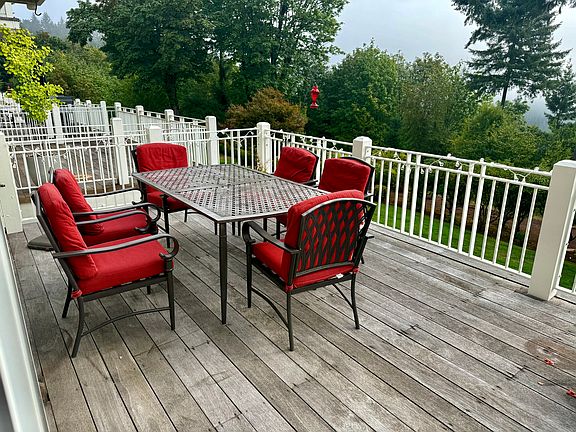 This condo is located in the lovely town of Camas, Washington, adjacent to Vancouver, Washington, and it's an easy drive to Portland, Oregon and the Portland airport (20 minutes). The views from our deck of the Columbia River and Mount Hood are breathtaking! The neighborhood is a mix of condos and single-family homes. It is only a five minute drive to Lacamas Lake and Round Lake and lovely hiking trails. The condo is fully furnished and was completely repainted inside in 2024. There are two full bedrooms and baths on the upper level (king beds in each), a spacious living room (with a large, smart TV), well stocked kitchen, dining room, and half bath on the main level, and a two car garage and a bonus room (with two twin beds, a small sofa and a TV) on the bottom level. The master bath includes a Jacuzzi tub and master closet is quite large and has built-in drawers. There is a deck off the master bedroom, in addition to the large deck off the living room. And there is a washer and dryer on the upper level. Utilities are included.