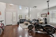 Versatile loftCozy fireplaceWood-like flooringHigh ceilingsSoft-close cabinetryCovered patioBuilt-in bbq pit