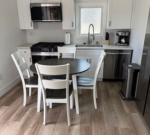 Lovely unit behind main house, brand new! Fully furnished, completely fenced from main house yard, everything is brand new, with full kitchen, table and chairs, queen bed, fireplace, sleeper sofa, washer/dryer, nice TV and back patio! In a quiet neighborhood!