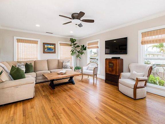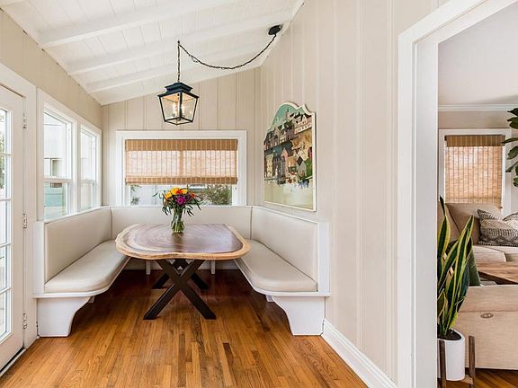 Welcome home to Coastal Oceanside! Peacefully situated on an expansive .14 acre lot, this quintessential single-story 1940s beach bungalow is the ultimate embodiment of seaside living w/ its idyllic location, coastal design aesthetic & entertainer’s backyard oasis! Curb appeal exudes from lush landscaping & inviting walkway that meanders to the front porch while a soothing neutral palette, gorgeous original hardwood floors & crown molding throughout work to create a captivating, light & bright interior. Bathed in natural light w/ multiple windows, the spacious living room offers an ideal setting for casual lounging or hosting gatherings alike. Galley kitchen w/ SS appliances, granite counters & laundry closet. Enchanting dining w/ wood panel walls, vaulted beamed ceilings, vast windows, built-in bench seating & french doors extending the comforts of the interior outdoors. Primary suite w/ crown molding, ensuite BA & versatile bonus room perfect for an expansive walk-in closet, office space, nursery or optional 3rd BR w/ separate entrance to the backyard. 1 secondary BR & an additional full BA w/ dual sinks rounds out this magnificent floor plan. Offering a perfect balance of beauty and function, enjoy San Diego’s idyllic weather year round in the immaculate backyard w/ expansive patio, lush drought tolerant landscaping & large lawn space. Unique property that extends to Alvarado St where you can access the detached garage. Wondrous opportunity to live in one of the most sought after coastal locations in North County! Less than 1 mile to the beach, walking distance to Carlsbad, restaurants, shops, weekly farmers markets & easy access to Oceanside pier, harbor & marina, outdoor activities & I-5! To see it is to love it!