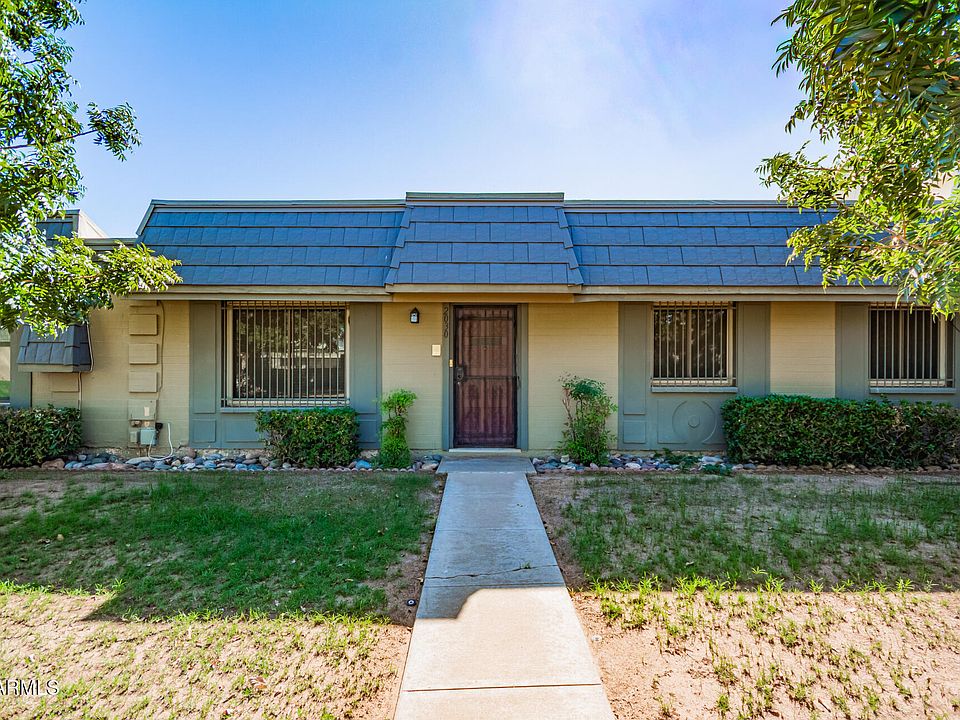 Adorable and move-in ready! This charming 3-bedroom home greets you with fresh interior paint. Inside, tile flooring all throughout and a welcoming living room perfect for relaxing or entertaining. The kitchen includes wood cabinetry, ample counters, appliances including a wall oven, a brand-new cooktop stove, and a handy pantry, all centered around a cozy breakfast bar. The main bedroom is a peaceful retreat with a private bath, while the laundry room provides extra storage with built-in cabinets. Out back, find a well-sized shed for extra storage, and enjoy the privacy of your own covered patio leading up to the two-car carport. Home is right across from the community pool. Close to shopping, dining, freeways, and everyday conveniences. This gem has it all! Don't let it slip away!