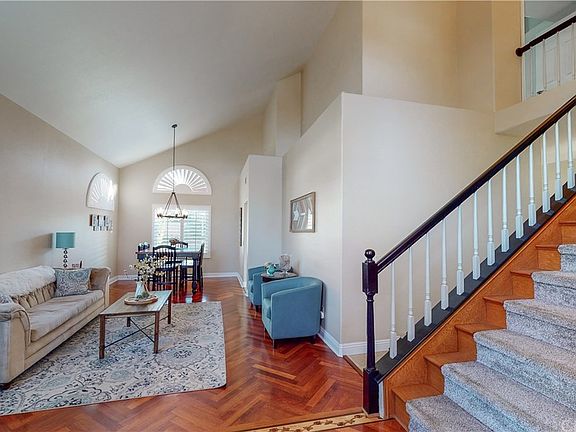 Highly upgraded home in a great location, don't miss this one! Custom paint, commercial-grade argon-filled windows, wood shutters & upgraded lighting/ceiling fans throughout. Completely remodeled kitchen w/granite counters, custom wood cabinets w/pull outs, a 36" commercial grade, gourmet stove & exhaust hood, stainless appliances, remote-controlled under-cabinet LED lighting & breakfast bar. Porcelain tile flooring. 1 bed & bath downstairs & 3 bed/2 baths up. Oversized Master Retreat w/fireplace & French Doors to a private balcony w/Trex engineered wood. Master Bath w/his & her closets, Roman tub, separate shower. Master bath is updated custom maple vanity with vessel sinks & Hansgrohe Axor sink faucets & granite countertop. Other Upgrades include 5-ton 15 SEER Bryant 2 speed AC & furnace with Carrier High-efficiency Electronic Air Filtration System, custom mahogany entry door w/stained glass, custom Merbau hardwood flooring in a herringbone pattern w/custom inlaid marquetry on the entryway landing with hardwood flooring continuing into the living & dining rooms. Garage features custom paint, epoxy flooring & extra storage. Meticulously landscaped, water-conscious grounds designed for ease of care & entertaining! Covered patio, tiered barbecue area, block fencing & planters. All planters/grass areas are enhanced w/drainage system, timed sprinkler/drip systems & Malibu lights. The community has top-rated schools, including Martin Luther King High, with no HOA and low taxes.