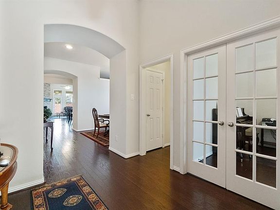 HURRY! This gorgeous 4 bedroom/2.5 bath home will not be on the market long! Located on a corner lot with no back neighbors or neighbors on one side. 2 Car Garage with an upgraded five foot extension along one side makes a perfect work space. Great curb appeal with brick and stone elevation. Entry boasts rich wood flooring, graceful arches and neutral paint throughout. Spacious study (can be a fourth bedroom) and formal dining. Generous, family room with wood floors, soaring ceilings, gas fireplace, views of the covered patio and backyard. Gourmet kitchen is an entertainer dream with huge island, granite counters, 42" cabinets, double oven, gas cooktop and continuous wood floor. Master suite has views of the backyard, plenty of room to accommodate large furniture and high ceilings. Master bathroom has dual sinks, garden tub, separate shower and a large closet. Secondary bedrooms share the second full bathroom with double sinks. Large laundry room with space for a second refrigerator.