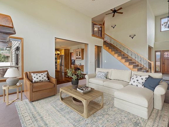 This exceptional 5-bedroom, 4-bathroom home offers everything you've been looking for and more. Located in the Woodland Hills Estate gated community, sitting on a generous 1-acre lot, this home boasts unobstructed mountain views that will take your breath away. The main-floor primary suite offers a resort like feel with a spacious bathroom and a walk in closet. The basement features two distinct living areas, including one with a built-in wet bar, wine fridge, and under-cabinet lighting. Outside, the patio and pergola create the perfect setting for relaxing by the gas fire pit. The 40x50 foot shop has 2 14x12 doors & an upper-level loft for storage. This home has been thoughtfully updated, with a new roof on both the house and the shop(2023), a brand-new furnace(2023), new dishwasher, and new electric blinds. The 40 acre green space has a mile long walking trail, and the 100 acres to the north is HOA owned land and both pieces are unbuildable to ensure the ultimate privacy.