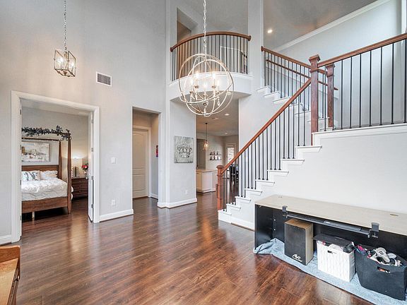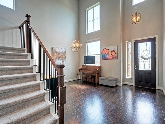 Gorgeous Home with Heated Inground Pool in Sought-After Blackhawk Community! Bright, spacious, and impeccably maintained— tucked away in a peaceful cul-de-sac in the highly desirable Blackhawk subdivision. Soaring ceilings, an abundance of natural light, and elegant wood flooring that flows throughout most of the main level. Includes 12kW solar panel system which is fully paid for - big electric savings, especially in the summer months. Sleek, modern kitchen featuring quartz counters, built-in oven, cooktop, microwave, and ample counter space—ideal for entertaining. Expansive living areas create a seamless flow, Downstairs primary suite, with a spa-like bathroom offering a garden tub, separate glass-enclosed shower, and generous closet space. Elegant office with French doors off the entry. Upstairs, a spacious game room anchors three additional bedrooms. Sparkling pool with energy efficient heat pump and a covered patio—ideal for Texas summers and year-round enjoyment. Plenty of extra back yard space, too! Electric vehicle charger in oversized garage (features large extra storage area). Full irrigation (sprinkler) system includes trees and flowerbeds. Located just minutes from Costco, Typhoon Texas, shopping, dining, and well-rated schools. Community amenities including two resort-style pools (one Olympic-sized), a state-of-the-art fitness center, scenic walking trails, and a golf course.