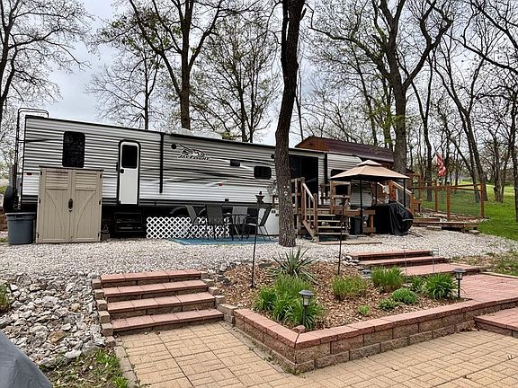 LAKE THUNDERHEAD TRIPLE LOT! Situated on 1.3 acres, located in a quiet neighborhood, in a park-like setting. Walk onto this serene property and immerse yourself in the lovely patio area, lined with trees and abundant wildlife. Included with this property is a well-kept 2016 Jayco travel trailer 38BHDS with double slides & full-size refrigerator. Enjoy cooking in the covered outdoor kitchen area! There is a 10x16 multi-functional, insulated building for additional space & storage. The building also has a pet run attached with doors. Let your furry friends live in luxury while you're away. Start enjoying Lake Life at Beautiful Lake Thunderhead! Property is being presented by Zillow Premier Agent Renee Morris (319 269 3615). Contact her for a tour & finance options.