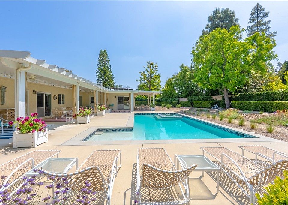 ** Welcome to Paradise ** If you love space and entertaining - THIS IS THE HOME YOU'VE BEEN WAITING FOR! ** As you enter this magnificent 1 story Colony West home you'll be greeted by it's almost 16,000 sf lot and about 3,360 sf of living space comprising of 4 bedrooms, 3 bathrooms, a grand living room & formal dining area with 10 foot ceilings, custom shutters and stone fireplace, an extremely spacious family room with built in entertainment center, custom cabinets & stacked stone fireplace, and a huge primary bedroom suite with sitting area, a large custom walk-in closet and a bathroom right out of a hotel brochure with a walk-in shower. The backyard has an opulent resort type feel with a refreshing pool & spa (resurfaced in 2023), built in BBQ, lengthy covered patio areas with custom lighting, fans, and curtains ** Fruit trees, a sectioned off dog area, and 4 fountains that will ease your stress away finish off this beautiful yard ** There's a secondary dining/eating area ** The custom kitchen features stainless steel appliances with double ovens, gas cooktop, microwave & breakfast bar ** Crown moldings ** Custom shutters & window treatments ** Custom lighting ** Ceiling fans ** Newer flooring in 3 bedrooms **Dual pane windows ** 4 Skylights ** Custom Murphy Bed ** Sliding doors in every room that faces the backyard ** Solar system with no payments ** 2 car garage plus a 1 car carport ** 2 storage sheds ** There are so many more custom features to this home, you'll have to see for yourself ** This is a must see - turnkey property **