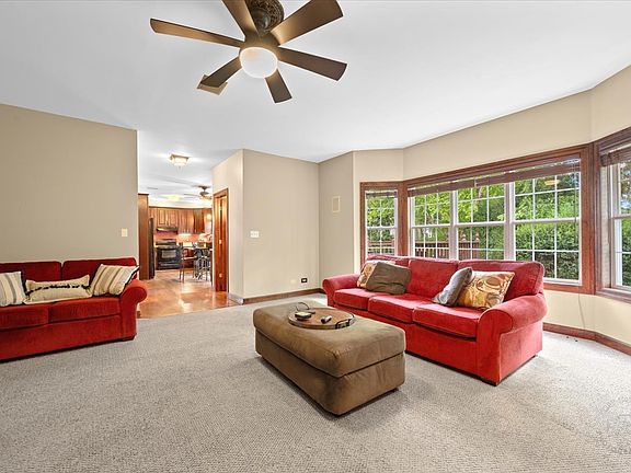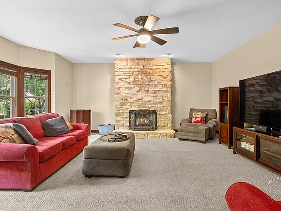 Set in the country club community of Eagle Brook, this home boasts a three-car garage, hardwood floors, 9-foot ceilings, six-panel cherry doors, granite countertops, a whole house fan and first-floor laundry. Perfect for entertaining family and friends with speakers throughout the home, a wet bar in the kitchen and plenty of open space to gather. Or, would you rather have a cozy night in? Then cuddle up by the floor to ceiling stone fireplace and relax. Outdoor living is easy with the expansive deck and mature trees that allow for privacy. And your four-legged friends are safe with the invisible fence. Upstairs finds three bedrooms and a loft, which can be an office, play area or even another bedroom. The oversized primary and immense walk-in closet is complemented by the en suite. Jacuzzi bath and renovated shower make getting ready for the day a pleasure. Complete with plumbing for a bathroom and 9-foot ceilings, the large basement is ready to be finished to your liking and provides ample opportunity for storage. Within walking distance to the country club and the park, come visit and see for yourself why 2031 Bent Tree Drive could be your next home to make memories in, as the current family has for over two decades.