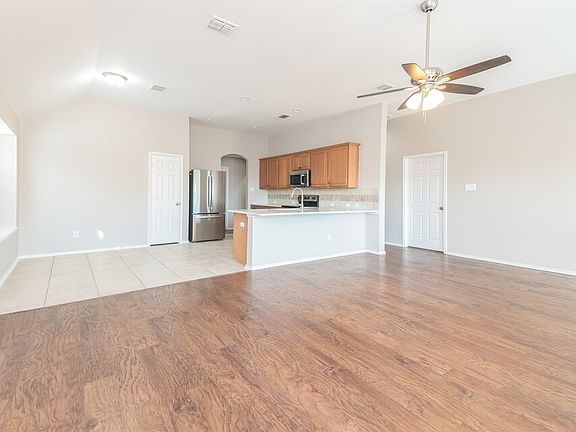 This landscaped rental home in Forney offers 1,793 square feet with two bathrooms and four spacious bedrooms. The living room has a ceiling fan/light fixture and a glass-fronted door that opens to the patio and fenced-in backyard while letting in floods of sunlight. If you love to cook, you'll adore the eat-in kitchen's ample counter space, tile backsplash, stainless steel appliances including a wall-mounted microwave oven, and double stainless steel sink. The main bedroom has an en suite bathroom with an enclosed shower and a double sink vanity painted in a lavender-toned blue with gold-tinted faucets. Its walk-in closet is roomy enough for your all clothes and accessories. Apply for this comfortable home today.