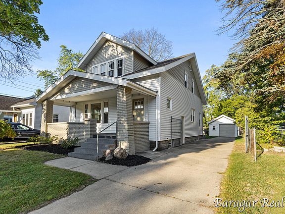 Located in NE Grand Rapids, this well-maintained home is full of charm and thoughtful updates, including gleaming wood floors, custom built-ins, and detailed trim work throughout. Offering 3 bedrooms, 1.5 baths, and flexible spaces, it's perfect for today's lifestyle. The main floor features a spacious foyer, a large living room, a formal dining room, and an updated kitchen. A rear mudroom entry adds convenience, and the main floor bedroom doubles nicely as a home office. Upstairs, you'll find a bedroom with an attached office/den, a second bedroom, and a full bath. The full basement provides plenty of clean storage space, while the oversized 1-stall garage and fenced backyard are added bonuses. Relax and entertain on the welcoming covered front porch or the roomy covered back porch. With central AC, modern updates, and plenty of character, this home is move-in ready!