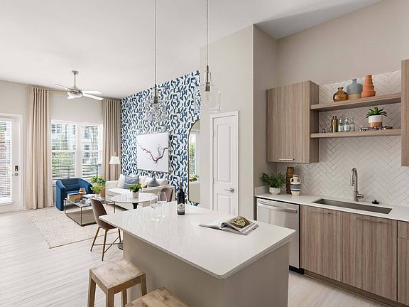 - Exterior features: Al fresco dining pavilion with bistro seating, Balcony, Bathrooms featuring built in linen shelving*, Business Center, Dual vanity sinks*, Electric vehicle charging stations, Entertainment island and coffee and tea bar, Group Excercise, High-speed Internet Ready, Large, multi-functional center kitchen island, Lawn, On-Site Maintenance, On-Site Management, Online payments and maintenance portal, Open shelving above the kitchen sink*, Package Receiving, Pet Park, Resident social events, Semi-frameless walk-in shower and/or soaking tub, Sundeck, Wood-inspired plank-style flooring in living area
