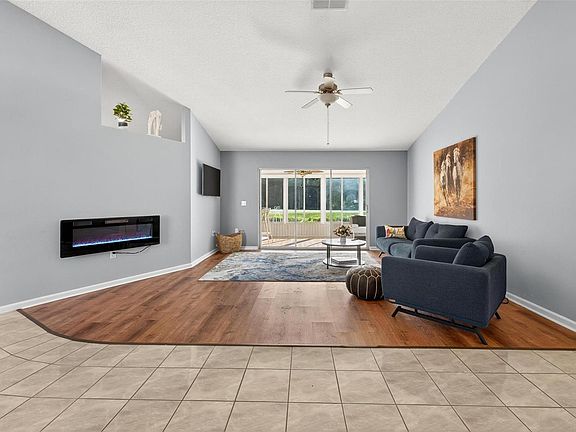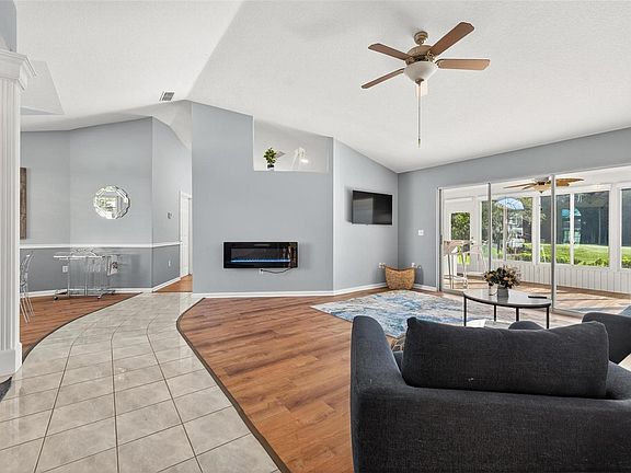 Welcome to this beautifully furnished 3-bedroom, 2-bath home offering comfort, style, and panoramic golf course views just minutes from the renowned World Equestrian Center.Step inside to an expansive living area featuring a cozy electric fireplace, elegant living room furnishings, and sliding glass doors that open to the enclosed lanai. Adjacent to the foyer, the formal dining area is highlighted by a large picture window overlooking the front of the property.The modern kitchen is equipped with stainless steel appliances, stone countertops, and convenient access to the lanai through additional sliding glass doors perfect for entertaining and enjoying indoor-outdoor living.The primary suite is a spacious retreat with its own sliding glass doors leading to the lanai. The primary bath features a soaking tub, dual-sink vanity, glass walk-in shower, and walk-in closet. The second bedroom enjoys abundant natural light and lanai access, while the third bedroom is comfortably furnished with twin beds. A shared guest bathroom includes a stylish glass walk-in shower.The enclosed lanai, spanning nearly the entire width of the home, provides a wonderful extension of living space. It includes a bar area, dining set, lounge seating, and a mounted TV, all overlooking unobstructed views of the golf course with no rear neighbors offering a serene and private setting.Located in the desirable Ocala Palms community, this home provides access to resort-style amenities, including a community pool, tennis courts, and clubhouse. Conveniently close to shopping, dining, grocery stores, and the World Equestrian Center, this property delivers the perfect blend of luxury, convenience, and Florida living.Rental Rates:Annual (12 month) term: $2,950 monthly November - April: $4,950 monthly (utilities up to $250 monthly and maintenance included)