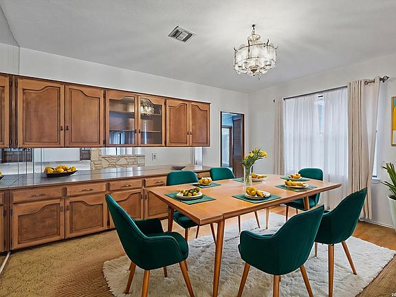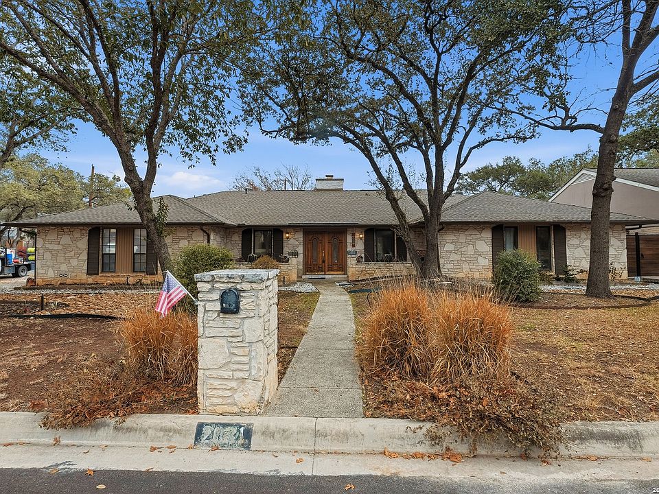 Located in the highly sought-after Churchill Estates, this 1977 single-story home offers a rare opportunity in an established neighborhood known for mature trees and strong resale value. Situated on a generous corner lot, the side-entry garage and classic rock exterior create standout curb appeal. A newer roof replaced in 2023 provides peace of mind and a solid foundation for future updates. Inside, the spacious floor plan offers multiple living areas and flexible spaces ideal for today's lifestyle. Two living rooms are separated by a double-sided fireplace, perfect for entertaining or creating defined gathering spaces. A formal dining area connects seamlessly to the kitchen and breakfast nook, with views overlooking the private backyard. The kitchen retains its original character and layout, offering a great starting point for renovation or a bold mid-century modern refresh. Just off the garage, a full bathroom and full-size laundry room add everyday convenience. An adjacent pantry area provides extra storage and could easily function as a home office or study space. The primary bedroom is privately split from the secondary bedrooms and features exterior access to the backyard. Two closets and an en suite bath with dual vanities and a walk-in tiled shower complete the primary suite. Secondary bedrooms are generously sized and share a full bathroom near the front of the home. The interior showcases original finishes throughout, presenting an ideal canvas for buyers seeking a renovation project or investment opportunity. Outside, the privacy-fenced backyard offers ample space for outdoor living, gardening, or future enhancements. Sidewalk-lined streets and an inviting neighborhood atmosphere make this community especially appealing. Residents enjoy access to a community pool, park, and sports court. The location provides easy access to shopping, dining, and major highways. Zoned to award-winning schools in North East Independent School District, this home checks a major box for long-term value. With strong bones, a desirable location, and endless potential, this property is ready for your vision. Whether you choose to update throughout or embrace its vintage charm, this is a chance to create something truly special.