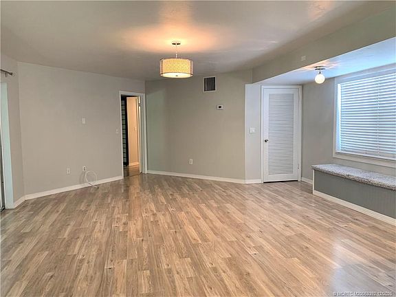 This 2/2 upstairs unit is conveniently located in The Village of Stuart, off Indian Street. No carpeting here...all laminate flooring throughout. The kitchen has been updated with an eye catching tile wall and tiled back splash, new stainless steel sink and faucet. All new stainless steel Whirlpool appliances, which include, a side by side refrigerator with ice and water on the door, dishwasher, built-in microwave and flat top range. Breakfast bar with updated light fixtures. Pantry. Washer & Dryer inside unit. Living area has built in bench-style seating off window. Big screened in balcony. Tenant is responsible for electric. Community Pool and tennis courts. One small pet under 20lbs at maturity, may be negotiable, with additional security deposit. Community has an association that has some requirements. NO Motorcycles, NO Passenger Trucks, NO Commercial Vehicles. Pickup trucks allowed but have restrictions.